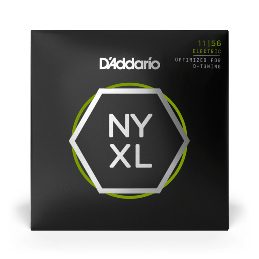 As cordas de calibre 11-56 Medium Top/Extra Heavy Bottom foram projetadas para manter uma tensão de toque confortável ao afinar um tom abaixo, até Ré.